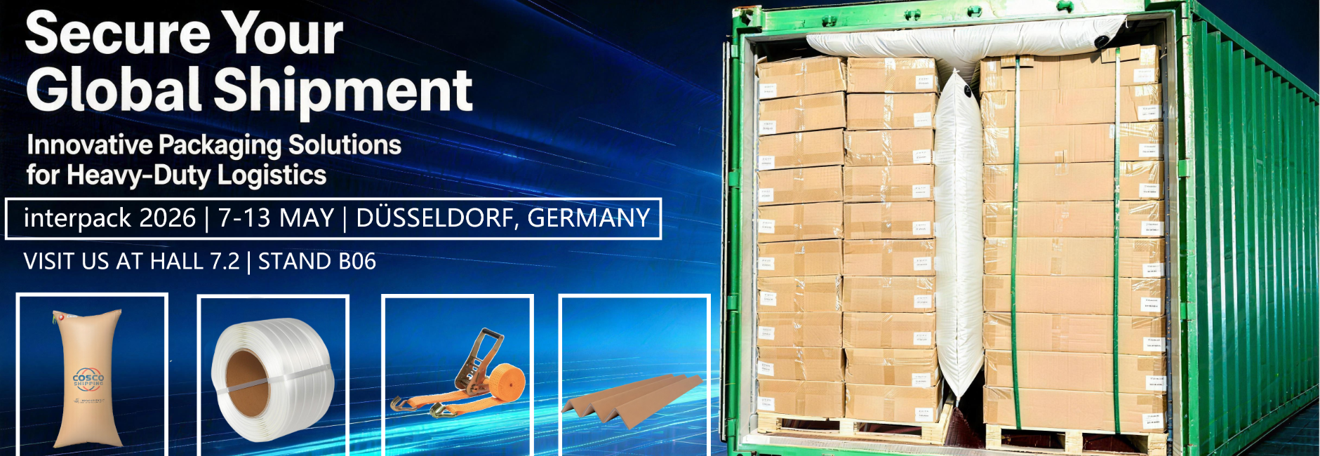 Shanghai We Pack Co., Ltd. will participate in interpack 2026 with a range of key products at Booth 7.2B06. We sincerely invite all customers, old and new, as well as industry partners, to visit our booth and discuss the latest solutions in transport packaging safety.